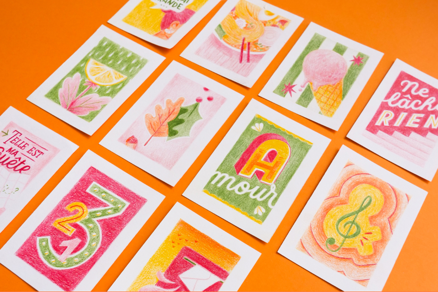 Le Studio Syllabe, c'est une bulle créative colorée.Je suis Mélanie Ramamon et mon univers graphique s'articule entre lettrage et illustration.